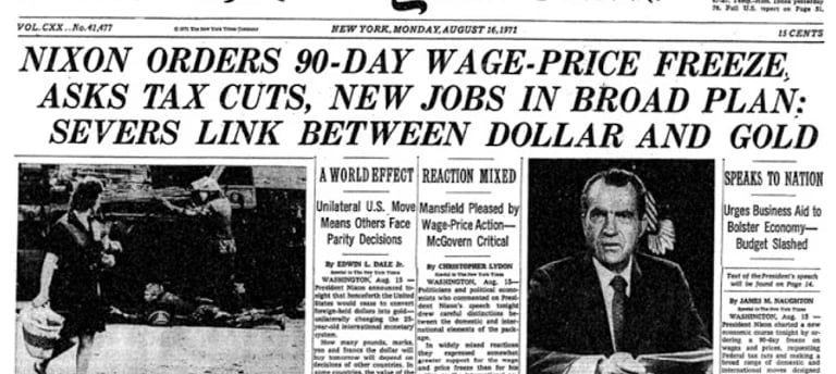 Hace 51 años, 15 de agosto de 1971, el presidente Richard Nixon sacó a Estados Unidos del patrón oro. Hace 51 años, Estados Unidos admitió públicamente al mundo en un mensaje por televisión, que estaba oficialmente en bancarrota y no podía seguir manteniendo su promesa de intercambiar dólares por oro.